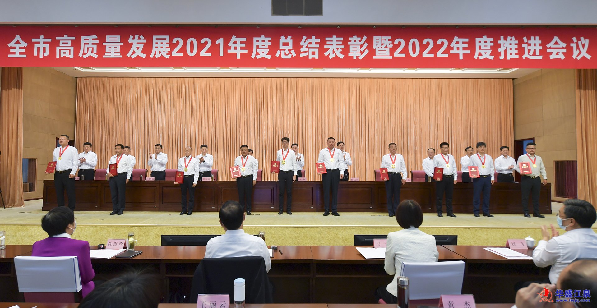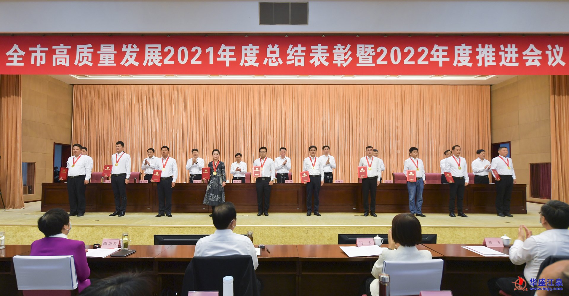 會議對2021年度臨沂市功勛企業(yè)家、行業(yè)領軍企業(yè)家、優(yōu)秀企業(yè)家和新舊動能轉換標兵企業(yè)進行了表彰,華盛江泉集團董事長王文濤榮獲“2021年度臨沂市功勛企業(yè)家”稱號,集團所屬臨沂新天地陶瓷有限公司榮獲“2021年度臨沂市新舊動能轉換標兵企業(yè)”稱號,此外,華盛江泉集團有限公司在全市42家地方稅收過5000萬元的企業(yè)中位列前十名,被會議通報表揚。華盛江泉集團董事長王文濤,華盛江泉集團副總經理、紀委書記王文坤參加會議并分別上臺領獎。