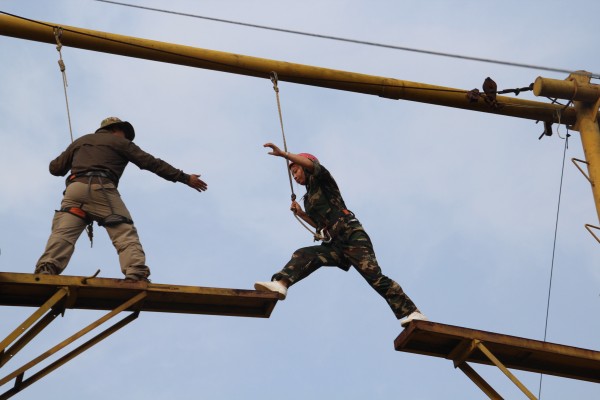 在拓展訓(xùn)練的過(guò)程中,大學(xué)生們精神飽滿、積極參與,充分展現(xiàn)了江泉人的風(fēng)采。伴隨著緊張的集合哨聲,訓(xùn)練課程正式開(kāi)始,大學(xué)生們穿著整齊統(tǒng)一的訓(xùn)練服,步伐整齊,喊著響亮的口號(hào),將青春的色彩點(diǎn)綴了整個(gè)訓(xùn)練基地。天氣炎熱,但大學(xué)生的激情不減,烈日下進(jìn)行著緊張的訓(xùn)練,課程緊湊、要求嚴(yán)格,每天的訓(xùn)練都在整齊洪亮的餐訓(xùn)聲中結(jié)束,“軍井未掘,將不言渴;軍灶未開(kāi),將不言餓;雨不披蓑,雪不穿裘;將士冷暖,永記我心!”